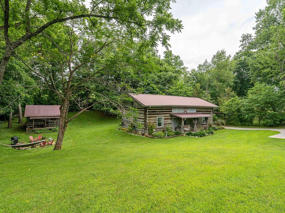 Back on the market at no fault of the sellers! Appraisal and inspections completed. Don't miss this rare opportunity to own a beautiful custom built log cabin with its very own historic guest house! This one of a kind cabin was built using hand selected wood from our region. Once inside, you will be in awe of the vaulted ceilings, exposed solid wood beams and hardwood flooring. The main level features a primary bedroom, plus an additional bedroom and office. The main floor also hosts a see-through fireplace with gas logs, a large kitchen with wormy chestnut cabinetry and separate laundry room. Upstairs, you find 2 spacious bedrooms with an abundant amount of closet/storage space and an additional bathroom. The storage barn and kennel do convey. Guest House- This historic house is believed to be one of the original homes from Jonesborough. The cozy guest house features a full bath, fireplace and loft bedroom upstairs. The kitchen area is equipped with a stove and plumbing for a sink is available. This unique private property is located near South Holston River and just minutes from the Bristol Speedway and the new Hard Rock Casino. This could be your very own personal retreat or would make a great Airbnb.