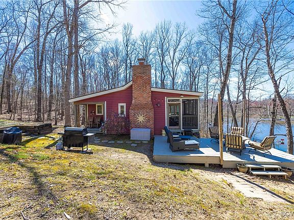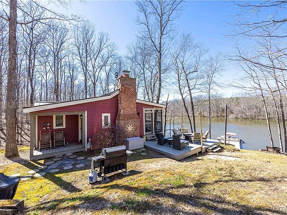 WATERFONT LIVING AT ITS BEST! "Carpe Diem" is a true craftsman cottage situated on a 2+ acre private, waterfront lot on the 200 acre, Trices Lake. Imagine lazy summer days boating, kayaking, fishing or just relaxing on your private dock. Wake up to gorgeous sunrises and end the day with Happy Hours and breathtaking sunsets. Originally a 1950's hunt lodge, this home was completely restored/renovated in 2009. The main living area features two bedrooms, one with reclaimed barn wood ceilings with rough cut beams, a full bath, a modern kitchen with stainless appliances, a living area with a cozy stone fireplace, gorgeous millwork, custom made beams and hardwood floors, access to a lovely screen porch, and oh, did I mention the VIEWS! Multiple outdoor areas include, decks, a fire pit, a newer dock and gorgeous hardwood trees offering total privacy. The basement area is heated and cooled and offers a laundry, a toilet and utility sink and lots of storage. There is even a wonderful outdoor shower to wash off and soak up the sun. There is an option to join the Lakeside Village Association for access to two sandy beaches, boat ramps, clubhouse and social activities. Most of the furnishings can convey, so this house is move-in ready and you can start enjoying lakefront living immediately. Best of all, it's located within and hour of Richmond and Charlottesville and 30 minutes to Farmville. So SEIZE THE DAY and make your appointment to tour this truly special one of a kind lakefront cottage today.