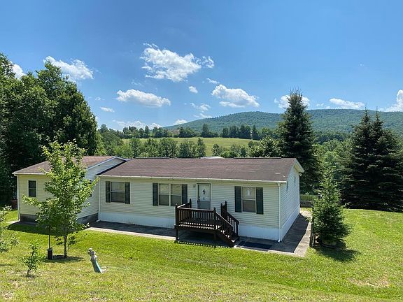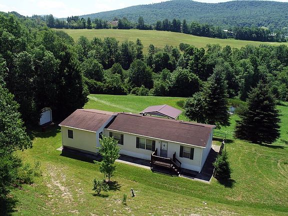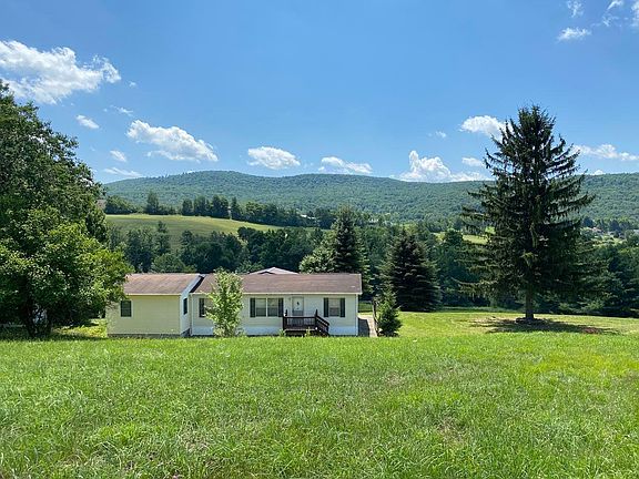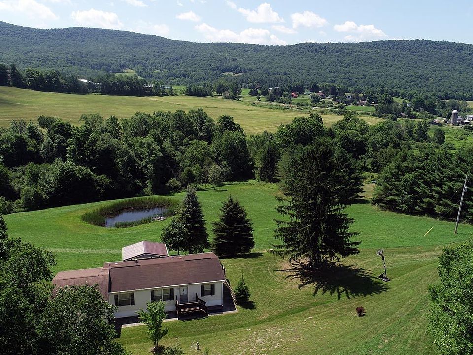 Travel to the end of a seasonal road, where the land opens up into your own scenic oasis of privacy, tucked away from the world and surrounded by beautiful mountain views. Ten acres of land offer a gorgeous sweeping meadow, woods, pond and stream. The manufactured home with addition provides plenty of space for family and friends with 4 bedrooms, 2 bathrooms, den/office, mudroom, and open living area with spacious kitchen. Relax or entertain out on the front porch looking out to the view of the mountains and pond. A 1-car garage/shed is included for storage. Walk down through the trails in the woods dotted with old apple trees. Find a hidden babbling stream meandering through. Enjoy recreation, riding all-terrain vehicles, hunting, hiking and all the surrounding Catskill region offers, including skiing, fishing, and local farmers' markets. The property is secluded, yet only minutes to the village of Stamford for conveniences, groceries, restaurants, and shops.