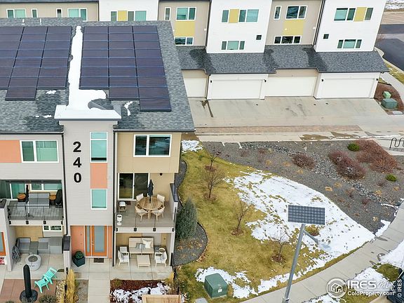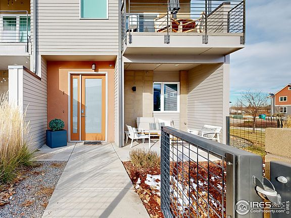NEW PRICE & concession or further price reduction for Contract before 4/30/24! Don't wait on this exceptional GREEN low energy cost property in the heart of Fort Collins. Supermarket, Starbucks, gas, pharmacy, bike trails all within walking distance. Access river rafting & hiking in Poudre Canyon in 15 minutes. Mountain bike trails in Lorry State Park and Horsetooth Reservoir are 10 minutes by car. One of the best locations for an END-UNIT townhome w/mountain views, abundance of natural light & solid Maple flooring throughout! Energy costs are so low w/the owned solar PV system, geothermal pump for heating & cooling! March electric utility bill was $6 This townhome features an open & chic floor plan with southern light exposure, dual primary suites with walk-in closets & vaulted ceilings, private fenced-in patio & yard and so many designer details and touches!.The build quality of this home is unmatched to new construction.Upon entry you'll be greeted by a main level guest suite with ensuite 3/4 bathroom and loads of storage located just off of the attached oversized 2 car garage. Storage racks in garage along with Tesla & hybrid chargers.On the 2nd level you will be taken back by a spacious open-concept light filled living area w/huge windows to take in the views!The HUGE gourmet kitchen has S/S appliances, plenty of quality high-end wood cabinetry, spacious quartz countertops.Spacious great room allows for easy access to the 2nd patio space to enjoy the mountain views and sunsets!The top/3rd floor is a private sanctuary w/2 additional ensuite bedrooms equipped w/luxurious ensuite bathrooms.A charming loft/den/office space sits in the middle that can be used for multiple functions with either ensuite flanking this space.The spacious primary retreat features a large 3/4 bathroom, spacious shower & huge walk in closet with custom shelving to maximize storage.NO Metro-Tax, LOW taxes & HOA fees in this great community.