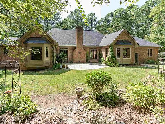 Beautiful custom-built ranch home in Apex just minutes from ATT & 540! Enjoy 5 acres in a tranquil setting-- a must see! 4-side custom brick home and single owner. Huge open family room, custom kitchen w/ Sub-Zero and Dacor appliances, large master bedroom w/ updated bath, casement windows, outside workshop & large walk-in attic. Freshly painted on the inside. Roof replaced 2017, HVAC unit in 2015. Beautifully landscaped. No HOA fees! No City Taxes! Horses Allowed! Water Filtration & Central Vac.
