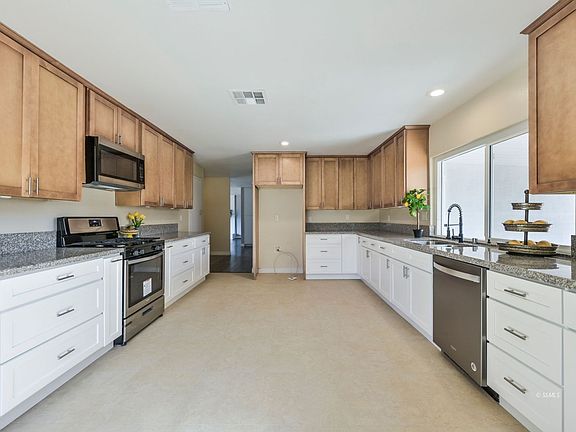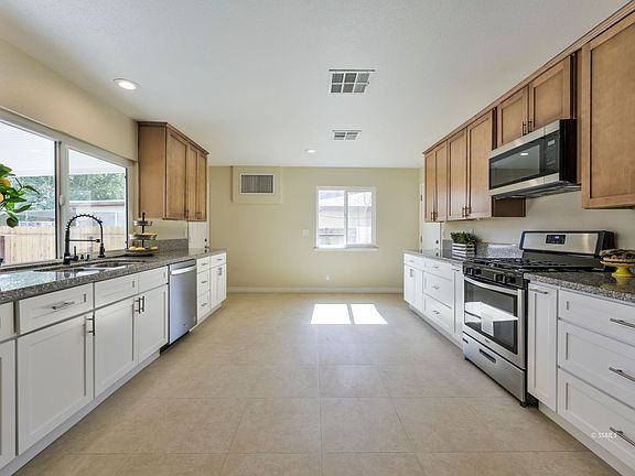 Cute as a button! This 3 bedroom 2 bath remodeled home is one you won't want to miss. Huge kitchen with newer kitchen cabinets, granite counter tops and stainless appliances. Updated laminate floors, recessed lighting, windows and doors. Great size living room with big window that gives a ton of natural light. Large white brick fireplace and tons of hallway storage. Both bathrooms have been remodeled with new shower/bath , vanities and fixtures. Blank slate backyard to make your own with large covered patio. This one is a keeper.