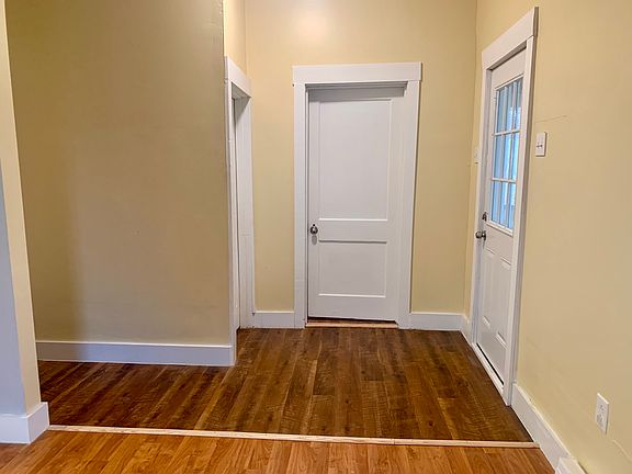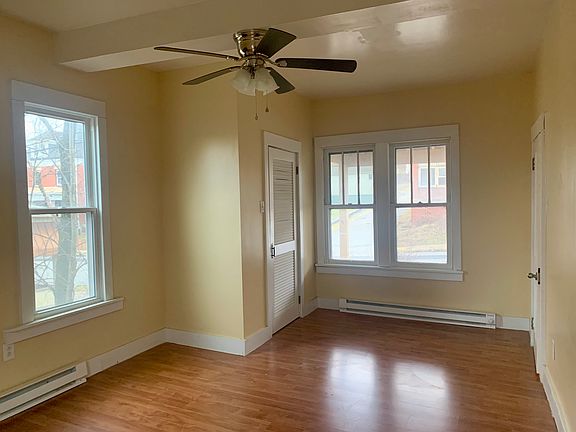This first floor, newly renovated apartment is in a convenient location and is available immediately. Enter under the covered roof to the open floor plan living room/kitchen area. Large bedroom. Bathroom features tile shower. Fridge, Range, Washer, and Dryer are all provided. Additional shared basement storage space is accessible from the apartment or from the basement door. The door next to the fridge leads to a covered side porch area. Tenant pays electric, water, and sewage. Please message for a tour of the property. No smoking or pets. Electric heat. Security Deposit required. Application available online 12 month