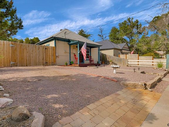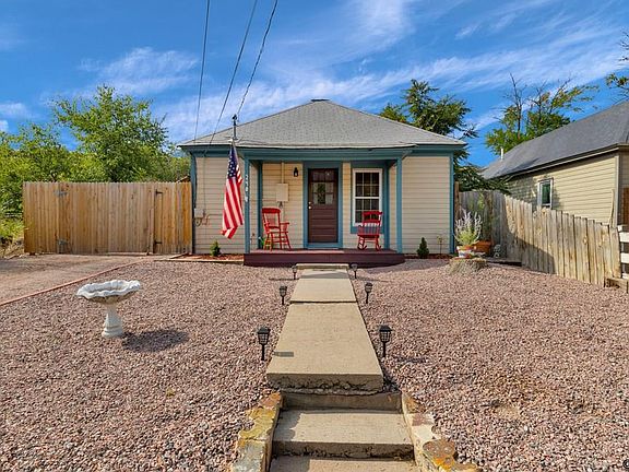 South Canon Bungalow with Rustic Charm located on a quiet street with views overlooking the city. This 2 bedroom, 1 bath has had several upgrades: flooring, light fixtures, bathroom vanity, electrical panel, windows, landscaping, fresh paint, and barn doors. Original hardwood in the living room and bedroom along with sash doors for the focal point upon entering the home! The kitchen has been upgraded with new countertops and cabinetry. You will find metal tin, old barn wood and antique handles. Following out the backdoor you fill find a concreted patio area with hanging lights, stoned fire pit that is great for entertainment! The detached little house in the back yard has a rustic bar, old style woodwork, and a 3/4 bath (could be used as a small rental house or artist studio)! There is a green house and good space for a garden. This home has many unique features and would be just right for a buyer looking for a quiet out of the way place. There is off street parking for extra vehicles or a camping trailer. It is located close to walking trails in the Canon City Area Metro Park and Riverwalk. Local restaurants and schools are just a short distance away!