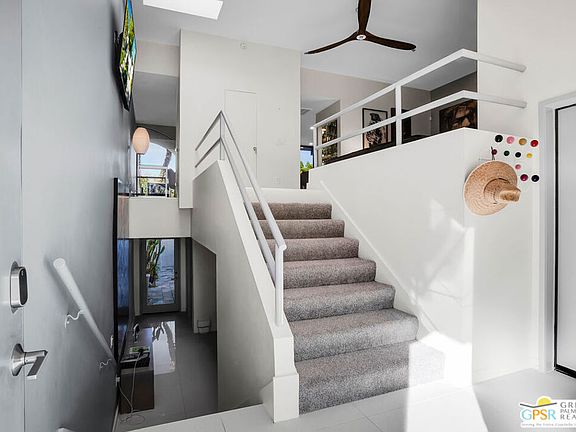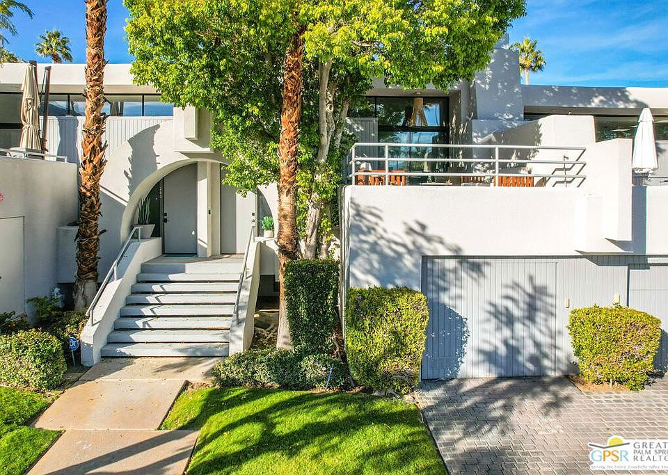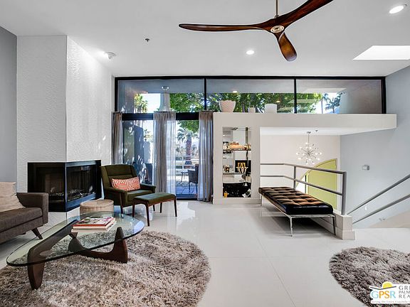 This is an uncommon split level 12 unit Townhouse complex, called The Compound, adjacent to Old Las Palmas neighborhood. Easy walk to Uptown Design area, restaurants and downtown. Completely remodeled with high end appointments. ...and fashionably furnished turnkey. Enter split mid level foyer, upstairs luxurious living room with fireplace and almost seamless access to entertaining patio. Efficient kitchen with white quartz Island with seating, pantry and open dining area. Downstairs, there are two primary ensuite bedrooms with highly upgraded bathrooms. Convenient new washer and dryer in hall leading to outside garden and retreat, Only 12 townhouse neighbors. Garage has new epoxy flooring and newly installed storage cabinets. Minimum maintenance and carefree living in abundant luxury!