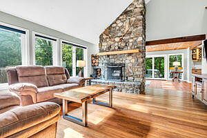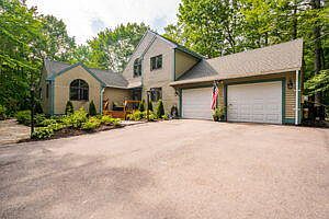 So Excited to introduce this beautiful custom contemporary home nestled on 3.21 acres in Raymond, Maine. This home features an open concept feeling home with hardwood floors, tile and some new carpet upstairs. First floor bedroom suite with full bathroom and hottub. A grand fireplace between the living room & sitting area with a built in stove oven to enjoy making pizza and more right at home. Large kitchen & dining area with a 3 season screened porch with direct access to a large back deck overlooking a spacious backyard, well landscaped with rock walls and hardscapes around the property with fruit trees too. Finish the growing current gardens in the homemade raised beds or start a new set of crops. 2 car garage, paved driveway. Being a Raymond resident you have access to a public beach on Big Sebago and Crescent Lake for swimming, boating, great fishing and all your water fun. Here's your chance to live in the Lake Region of Maine just minutes from Windham