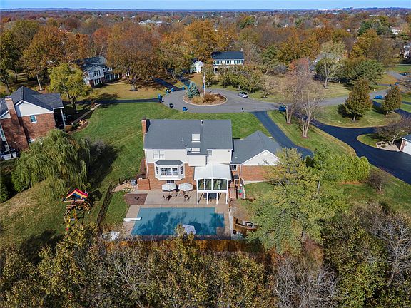 Classy, Comfortable, Updated, Pottery Barn-like executive 2sty on a premium cul-de-sac walk-out lot in the ever-so-desirable Forest Hills Country Club Estates. This home has been so well cared for. Nice Family kitchen w/ center island, custom cab granite tops, breakfast room, wine cooler & pass through counter open to Dining Rm. Kitchen Steps out to 3 season Sunroom over looking your own private backyard oasis of fun, Salt-water pool, Gazebo, covered patio that is perfect for entertaining! Beautiful family room w/ wet bar, fireplace flanked by custom built-in cabinets. Glamorous Master Suite w/ wood floors, Vaulted ceiling, walk-in closet. Relaxing garden tub, dbl sinks, separate shower. Large secondary bedrooms too. Fin Walk-out lower lever w/ rec area, TV area w, fireplace office/craft room, full bath and bar. Easy walk or short golf cart ride to country club should you join. This offers country club living at its finest! Awesome home in awesome neighborhood. Rockwood schools too