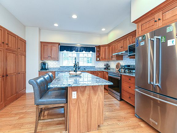 This stunning 3 bedroom/4 bath New London home is located in the prestigious Woodland Trace neighborhood. Toast the sunset from your screened porch or open deck. So much space for entertaining with the open concept flowing from kitchen with cherry cabinets and granite counters to dining and living room with fireplace and beautiful hardwood floors. Spend some quiet time in your cozy den/office. The westerly views are enjoyed from the living room with cathedral ceiling and balcony. The first floor Primary Ensuite has double vanity and walk in closet. Rounding out the first floor is a mudroom area with closet, laundry room and half bath. Two large bedrooms with full bath on the upper level and 2 bonus rooms on the walk out lower level are presently being used as bedrooms. The finished large lower level also has a bathroom, tv room , game room and unfinished space for storage. Mini split adds A/C for comfort on those hot summer nights. So many great features including whole house generator, plenty of closets, large built in bookcase and storage space over attached 2 car garage. Skiing only 15 mins. to Mt. Sunapee and 25 mins to Ragged Mt. The quintessential New England town of New London is only a few minutes away offering shopping, summer stock theater, restaurants, hospital, outside skating rink, town beaches and the beautiful Colby Sawyer College. Click on Unbranded Tour for a 3D tour of the house.