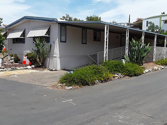 This 1250 square foot mobile / manufactured home has 2 bedrooms and 2.0 bathrooms. This home is located at 2400 Alpine Blvd SPC 71, Alpine, CA 91901.