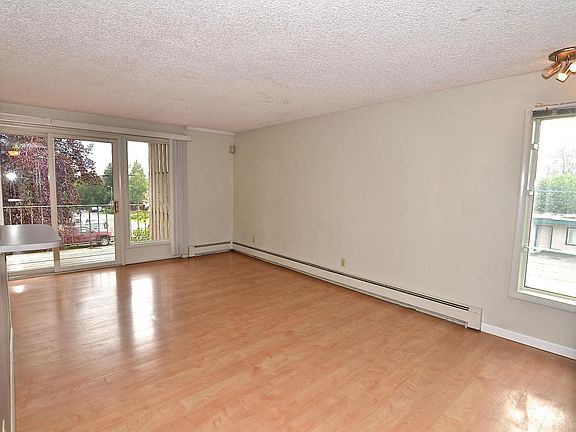 Close to bike trails and downtown. Nice laminate flooring, new carpet, new vinyl in kitchen and bathroom, new paint. Bright kitchen, spacious bedrooms. Large deck off dining room with city views in the winter months. Dues include everything: heat, electric, gas, water,sewer,trash, insurance. Secured building.
