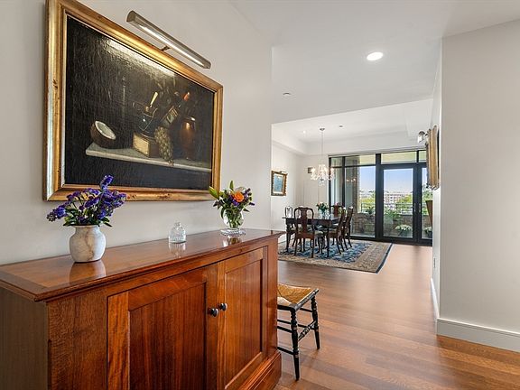 Remarkably quiet and updated 1 bedroom, 1 and 1/2 bath unit in Waterworks Chestnut Hill - Complete recent “refresh” including renovated bathrooms, quarter sawn white oak hard wood flooring throughout, updated kitchen, new dishwasher, Wolf oven, quartz countertops, new AC unit, completely repainted, and new washer/ dryer. Private balcony off of the main living area with lovely views of Cassidy Park and Chestnut Hill Reservoir. Spacious primary bedroom with custom closet and a large ensuite bathroom. One outdoor deeded parking spot. Condo amenities include a concierge team, state of the art gym, function room and incredible lush grounds.