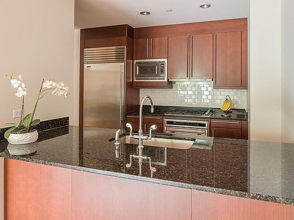 This elegant two bedroom, two bathroom unit with 1210 sq. ft. of living space at the Waterworks of Chestnut Hill offers a beautiful open living room/dining room with glass doors to the balcony. Customized kitchen features PoggenPohl cabinets, and Subzero, Wolf and Bosch stainless steel appliances. The spacious master bedroom has a large walk-in closet and a bathroom with marble/tiling, a soaking tub and a shower. The 2nd bedroom has a bathroom right outside it's door. Washer/dryer in the unit. Amenities include: garage parking for one car, fitness center, function room, concierge services, recorded surveillance, professionally managed. This pet friendly, smoke free building is across the street from the Chestnut Hill Reservoir, three MBTA lines, shops and near the Chestnut Hill Mall.