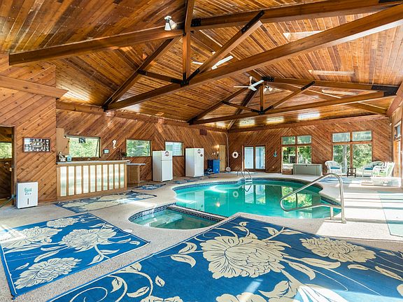 HIGHEST & BEST - SUBMIT ALL OFFERS BY THURSDAY AT 7;30 P.M. , RESPONSE WILL BE BY NOON ON FRIDAY. Your Dream Home Awaits!! Beautiful Trees Surrounds 4+ Acres w/a Stocked Pond. Mother nature is everywhere you look. INDOOR Salt Water Heated Pool w/Jacuzzi & Wet Bar. Finished Basement with 2 additional bedrooms makes 5 bedrooms total. One bedroom is being used as an office. Kitchen boasts granite counters and SS LG appliances, (BRAND NEW FRIDGE in June 2020) Hardwood Floors flow through living room & two bedrooms. A huge Bay Window offers Tremendous views of Pond. 2 nice sized decks & 2 fireplaces plus a wood burning stove in the lower level. Relax in the Cedar gazebo while gazing into pond. Sq. ft is 3422 above ground/1161 in lower level. PLS ASK YOUR AGENT FOR LIST OF IMPROVEMENTS.