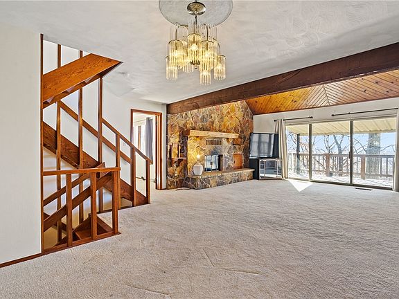 Amazing, Unique Home...Master Suite on Upper Level w/ Two Level Walk In Closet + Spectacular Bath... Upper Level 2nd BR Boasts a Balcony. 2nd. Master Suite on Main Level. Open LR/DR Area w/ Picturesque Views...Stunning Fireplace - Eye Catching Ceilings. Desireable, Equipped Kitchen w/ Access to Deck + Additional Entry to 2 Car Garage / Storage. In 2012 the Roof was Replaced, Leaf Guard Added, Furnace & Central Air Replaced, Trane Brand, Sewage Pump Replaced - Documentation to ALL will be added to Attachments. Home Offers an Abundance of Storage Space Too. An Additional Amenity is the 1.651 Acre Lot w/Shed. 1 Year HSA Home Warranty with 7 Star Buyer Upgrade Inc.
