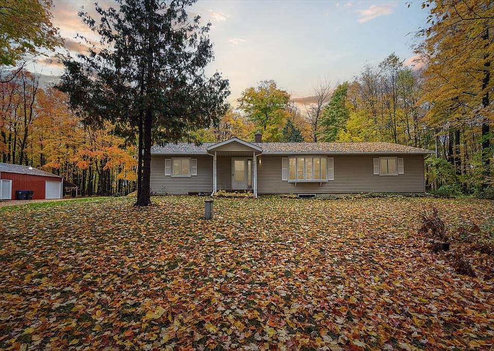 This charming property is newly updated 3 bedroom, 2 bath home situated on a serene 6-acre lot surrounded by beautiful woods. With a variety of recent updates, including new kitchen appliances, new kitchen and bathroom cabinets and countertops, stylish lighting fixtures, and luxurious vinyl flooring and carpeting throughout, this home offers both functionality and aesthetic appeal. Additionally, the property features a convenient outbuilding that can be used to store recreational equipment or easily converted into a workshop. The basement boasts a bonus room, perfect for additional living space, and there is also a 3 seasons room off the dining room where you can relax and enjoy the outdoors.