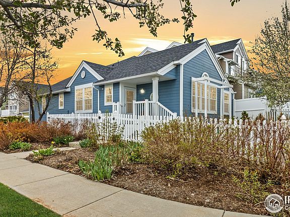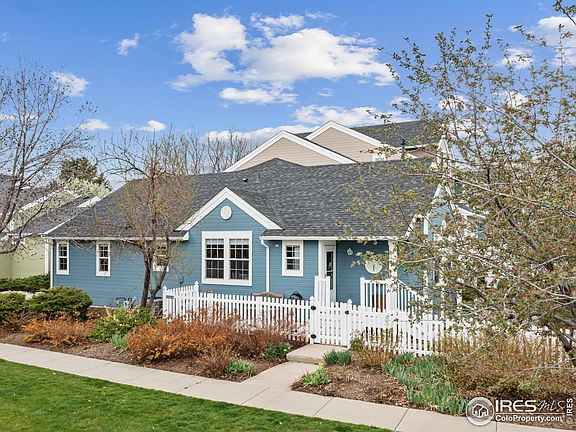 This charming end-unit townhome is nestled in the highly desirable Indian Peaks neighborhood on the west side of Lafayette. With a fenced yard, picturesque views of the front range, and steps from the Indian Peaks Golf Course, this two-bedroom, two-bathroom ranch-style townhome offers a perfect blend of comfort and convenience. You'll love the open floor plan, wood floors, and natural light throughout. The updated kitchen is a chef's delight, featuring granite countertops, 42" knotty pine cabinets, and stainless steel appliances. A double-sided fireplace is shared with the primary bedroom, creating a cozy and inviting atmosphere. The primary suite is a retreat in itself, featuring a walk-in closet and an attached bathroom with a double vanity and custom tile shower. An additional bedroom and bathroom offer versatility for guests or a home office. The two-car attached garage provides ample storage and parking space. Enjoy the convenience of nearby amenities such as grocery shopping, restaurants, workout facilities, and the Indian Peak Golf Course just moments away.