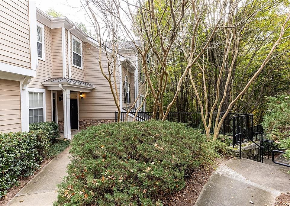 Rare find in Vinings! Beautifully updated 3-bedroom, 2-bath unit with a rare 2-CAR DETACHED GARAGE, the only one in the complex! Located in the gated swim community of Vinings Chase, in the heart of True Vinings, this spacious unit boasts the largest floor plan in the complex and is perfectly situated on a scenic hillside with serene wooded views. Step through a private entrance into this end unit, where an interior staircase adds a townhome vibe. Every room offers peaceful views of the natural surroundings. The family room features new flooring, a cozy fireplace, 10-foot smooth ceilings, and a floor-to-ceiling window that floods the space with natural light. A door open to a private balcony with tranquil wooded views. The bright and open kitchen includes custom marble backsplash, under-cabinet and overhead lighting, pendant lighting, stainless-steel appliances, Corian countertops, a walk-in pantry, and a breakfast bar. The adjacent dining room is accented with chair rail molding and modern lighting. The owner's suite is spacious, with new flooring and a walk-in closet. The owners bath features tile floors, a double marble vanity, a garden tub, a separate shower, beadboard accents, and custom mirrors. The second bedroom offers a large walk-in closet, while the third bedroom, also with new flooring, can serve as a home office. The second bathroom has been updated with new tile flooring. Special highlights include new flooring throughout (except one bedroom), fresh paint, new appliances, upgraded lighting, smooth ceilings, a new HVAC system, a new hot water heater, and updated tile in the guest bathroom. There’s also a convenient laundry room in the hallway. The 2-car garage offers ample storage space. Community amenities include a newly renovated fitness center, swimming pool, sun deck, gas grill, and cookout area. This gated community provides security and a peaceful, park-like setting, just a short drive to Vinings Jubilee, Home Depot Corporate, the Chattahoochee River, walking trails, major highways, Buckhead, Atlanta Airport, shopping, Smyrna Market Village, Silver Comet Trails, and only 2 miles from The Battery/Truist Park. HOA fees include 500 MB high-speed internet, cable with HBO and Cinemax, water, pest control, landscaping, and trash. Low Cobb County taxes! Recent HOA Community improvements include roof replacements, parking lot resurfacing, high-security mailboxes, and upgrades to the gym and pool.