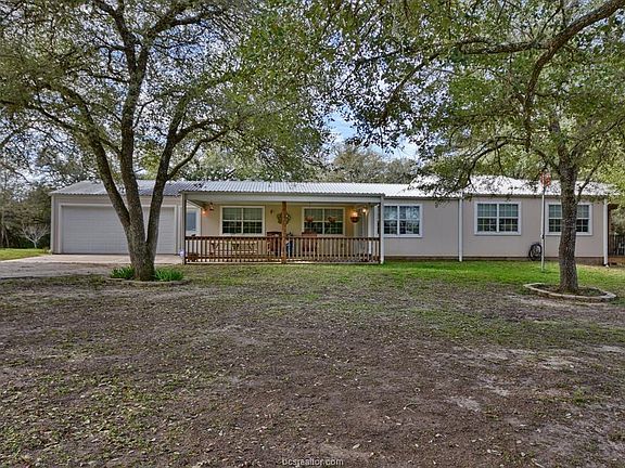 When the country calls ~ Spend your weekends or retirement on this quiet country road surrounded 14 acres with majestic live oaks rocking on this wonderful deck. Charming one-story 3 bedroom, 2 bath home on slab with hardi plank exterior and metal roof AND over sized attached garage PLUS great shop/barn/she-shed for all his extra cars and projects plus her get-away hobby/sewing center. Walk the trails and enjoy the solitude.