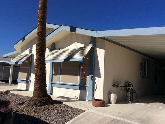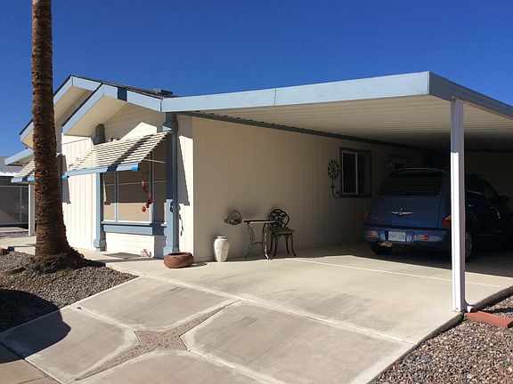 Hallmark top of the line with 2X6 exterior construction for lower heat and cooling bills. Nice open concept floor plan, great for entertaining with two covered patios. Furnished home with newer paint inside and out. Nice landscaping in front and back. Garage is large enough for your vehicle, has a work bench and storage. Also has an additional covered carport. This is a perfect home for a full time resident or winter visitor. Call Betty 503-998-5217 or Joe 602-284-1221 to see Today!