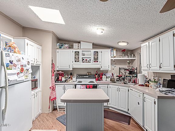 Welcome to this lovely manufactured home in the sought-after Rancho Mirage! Featuring 3 bedrooms, 2 bathrooms, and convenient carport parking. Inside, you'll find a spacious layout with wood-look flooring, vaulted ceilings, abundant natural light, and neutral tones throughout. The well-appointed kitchen showcases ample cabinetry and counter space, a prep island, and built-in essentials. Relax in the main bedroom after a long day, boasting carpet for added comfort, a closet, and a bathroom with double sinks. Spend cheerful evenings in the screened patio. The backyard hosts a storage shed, pavers, and an easy-care landscape. Don't forget to visit this welcoming adult community's features, including the pool, spa, clubhouse, pickleball, and more! Make it yours!