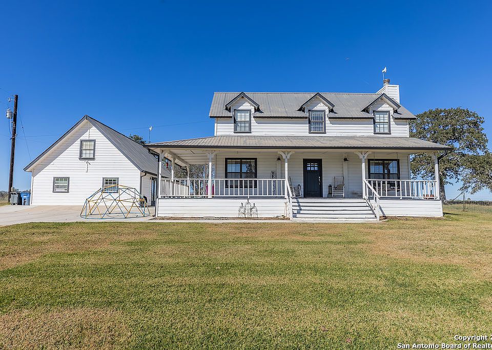 Discover the perfect blend of rustic charm and modern comfort on this stunning 98+ acre gentleman's ranch just minutes from Seguin. This beautifully maintained 3-bedroom, 2-bath farmhouse welcomes you with warm, inviting interiors and timeless country appeal. An attached bunk house offers flexible space for guests, family, or weekend getaways. The property also features an impressive multi-purpose shop complete with two roll-up garage doors and a dedicated entertaining area, ideal for hobbies, storage, or hosting gatherings. Livestock enthusiasts will appreciate the working cattle pens and a pig barn designed for show animals, making this an excellent fit for agricultural or 4-H/FFA families. With 98+ acres of gently rolling, picturesque land, this ranch showcases two large tanks, towering oak trees, and fully fenced boundaries for privacy and functionality. Whether you're seeking a full-time residence or a weekend retreat, this property offers the peace, space, and versatility of true country living-while remaining conveniently close to town. A rare opportunity to own a turnkey ranch in a prime location-your dream countryside escape awaits.