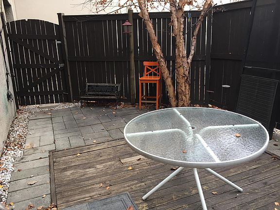 Canton Apartment Rental: 2400 Fleet street ( 1st floor rear) with PRIVATE PARKING!! One half block to Patterson Park. 4 blocks to Safeway Food Store and Convenience stores Unique "carriage House" design with secured off-street parking area, private fenced in patio, plus spacious 2nd floor deck. 1st floor has living area adjacent to fully equipped kitchen with ceramic tile flooring. It opens to a fenced -in private patio. First floor also has a full bath. 2nd floor has spacious 15' x 15' bedroom, with wood parquet flooring, vanity sink, built in head board with reading lights. Door opens to spacious deck. Gas forced air heat, central A/C, cable, electric stove with oven, dishwasher, high capacity fridge, clothes washer and dryer. $1600 month plus utilities $1,600 deposit 2 year lease or longer