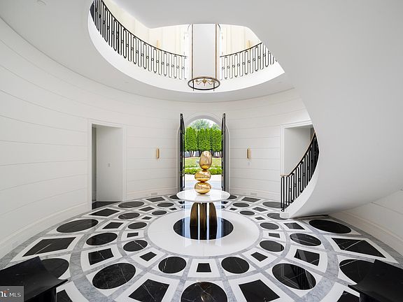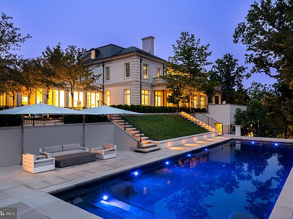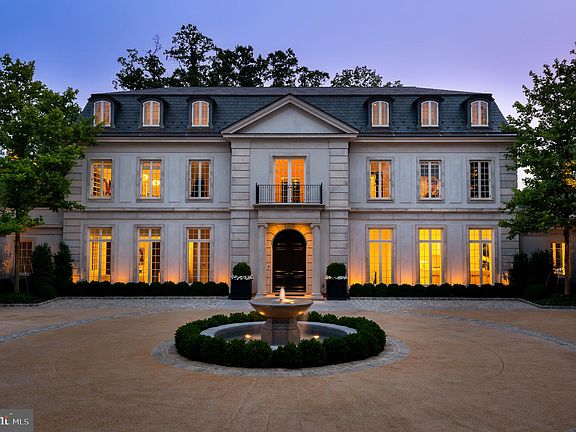 Sited along revered Foxhall Road, at the highest point in Washington, sits one of the finest residences ever constructed in the Capital Region. Inspired by the Château du Grand-Lucé in central France, an undisputed all-star team of artisans — interior designer Thomas Pheasant, developer Michael Banks, architect David Jones, and landscape architect Richard Arentz — have collaborated over the course of three years to create an estate whose unrelenting splendor harkens back to an era of handcraftsmanship extremely rare in contemporary times. The discreet walled and gated entrance opens to reveal a meticulous front garden and paved cobblestone motor court, centered by a bubbling marble fountain. Indiana Limestone punctuates the stucco on the masonry facade, topped by a handsome slate mansard roof. In perfect symmetry and proportions, tall windows and arched dormers above replicate the home’s inspiration in the most exacting manner. Entering the property is an occasion in and of itself. Beneath the limestone portico is a set of arched double doors, parting ways to welcome guests into a breathtaking, double-height rotunda with a curved floating stair that serves as a functional work of art. Underfoot, imported Italian Niro Marquina marble radiates toward the formal rooms. The living room spans almost the entire width of the property and features a custom bar balanced by a floor-to-ceiling temperature-controlled wine display, lined with French doors framing breathtaking views of the terrace and rear garden. Countless artisans from across the country were enlisted to create the custom-cast bronze metalwork and plasterwork found throughout the home. This exacting level of detail extends to every aspect of the property. The kitchen is a textbook example of minimalism, with its continuous European cabinetry and slabs of marble only accented with brass hardware. Miele, Wolf, and Subzero appliances with Waterworks hardware come together in a harmonization of form and function. Ascending the rotunda stair reveals the principal bedroom. A private limestone terrace overlooks the grounds with unobstructed westward views beyond. A marble corridor traverses the space, bridging the two primary baths and expansive dressing rooms. Each wing has a distinct theme, boasts heated floors, and is drenched in marble. Additional ensuite bedrooms are found on the third level, tucked under the mansard roof. The lower level showcases equally impressive outdoor views with its sweeping wall of floor-to-ceiling windows framing the verdant tree line and private rear grounds. Absolute black granite on the floors, walls, and ceilings adds a striking touch, while the plush cinema, spa, and fitness facilities more than befit a home of this caliber. A professional two-story indoor sports court and golf simulator complete the space. Landscape architect Richard Arentz wanted the landscaping to be as important as the home itself. As such, he spent years meticulously engineering, hardscaping, and installing countless mature plantings from all over the country that evoke a rare sensation of total privacy and tranquility, a feeling intensified by the beautiful simplicity of the estate grounds. The tiered garden reveals a fifty-six-foot heated pool, and just beyond the pool, a private chipping and putting green. Internal systems are all of the highest capacity. Highlights include a whole-home seventy-two-kilowatt generator, eight geothermal wells providing twenty tons of cooling capacity, and twin three-car garages. Strategically positioned mere minutes away from the White House, embassies, upscale dining, and vibrant entertainment hubs, this estate offers unparalleled convenience. Undoubtedly, 2400 Foxhall Road stands as an extraordinary testament to unwavering quality, representing one of the most exceptional properties ever presented in the Mid-Atlantic.
