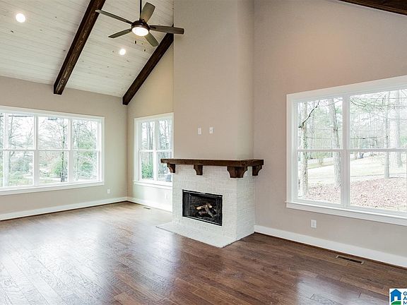 New Home in Vestavia Hills. Lots of space and an open floor plan with current designs and finishes. Deluxe kitchen has large island with seating, quartz countertops, stainless GE Cafe appliances, including refrigerator and gas cooking. Great Room has vaulted, beamed ceiling with tongue and groove finish, ceiling fan, and access to the covered patio. Large dining area is open to Kitchen and Great Room, perfect for gatherings and entertaining. Master BR easily fits King-sized furniture & features double closets with custom shelving. Master BA shower has overhead Rainfall fixture plus wall shower head, separate tub, double sink vanity & linen closet. Loft upstairs is great multi-use space. BR's 2 & 3 upstairs share Jack 'N Jill bath with double sink vanity, linen tower, and separate tub/toilet area. BR 4 has a private bath. Walk-in attic storage or room for future expansion. Low maintenance brick exterior w/ hardi-plank accents. Nice level backyard will be fenced & has shade trees.