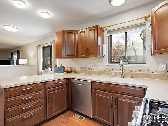 Updated 4 bed/3 bath home in West Ft Collins close to Horsetooth Reservoir, trails & minutes to CSU/Old Town. Renovated kitchen has SS appliances, gas range, pantry & Corian counters. Features; Open concept, spacious rms, multiple living areas & sunroom overlooking fenced yard. Spacious backyard w/raised beds makes it easy to grow a garden. The primary suite has walk-in closet & onsuite bath for a tranquil escape. Bonuses- unfin bsmt for storage/expansion, on corner lot w/NO HOA & NO Metro tax.