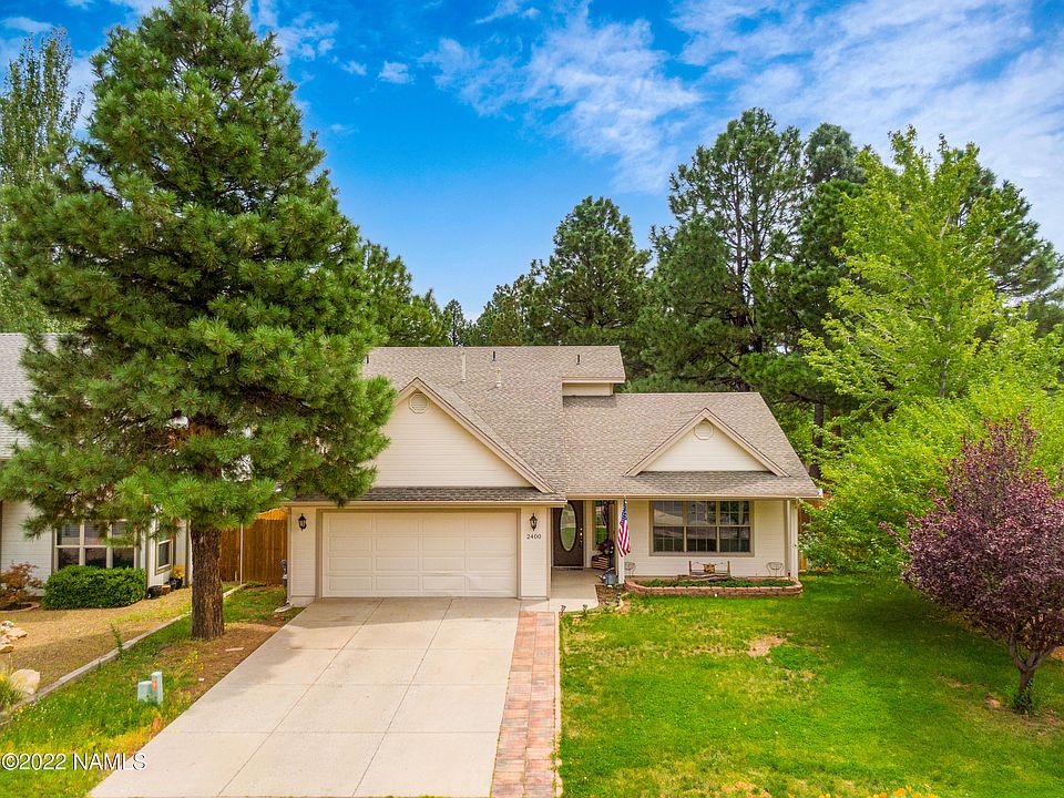 This home is a FLAGSTAFF GEM! It has a great location, 4 bedrooms, 2.5 baths, a den, a large corner lot and NO HOA! Your new home is located close to Foxglenn Park, The Aquaplex, Northland Prep Academy, downtown, and the Flagstaff Mall! It features a large family room with vaulted ceilings, new interior paint, and an open — newly remodeled kitchen! The kitchen has a large island with a breakfast bar (with lots of storage), new counter tops, new cabinets, and ample counter space! There is also a new sink, new flooring, and a large pantry! The primary suite is located on the main floor; it is spacious and offers a dual vanity, soaking tub, walk-in shower, and large walk in closet! The Den is located on the main level and features a fireplace that will keep you cozy in those chilly winter mon ths! There is a separate laundry room, 2 car attached garage, and new carpet throughout the home. The upstairs has 3 bedrooms and a bathroom with a dual vanity! The large corner lot boasts a fully fenced back yard that is landscaped with drip system and features a patio, grass, and beautiful mature trees. It also has a fenced dog run and a BONUS side yard that has space to park a small RV or trailer! The home has it all including AMAZING views of Mt. Elden and the San Francisco Peaks! Don't miss out on this one or you'll be sorry! Schedule your showing today!
