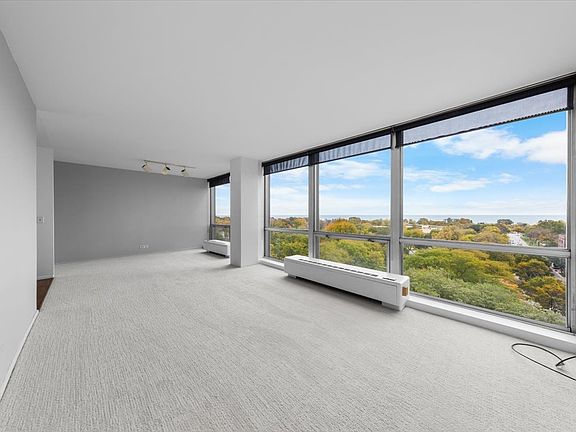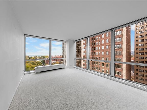 This stunning one bedroom condo offers breathtaking, floor-to-ceiling east-facing windows framing panoramic views of Lake Michigan and Lincoln Park. Flooded with natural light, the spacious open layout provides a perfect flow for both entertaining and everyday living, featuring a true dining area and an oversized living room. The large corner bedroom, with east and south exposures, includes custom built-in shelving and drawers for ample storage. The sleek, remodeled kitchen boasts quartz countertops and modern finishes, while the bright white bathroom features a walk-in shower. Brand-new carpet installed on 10/28/2025 adds the finishing touch to this stylish, move-in-ready home. Photos do NOT reflect new carpeting.