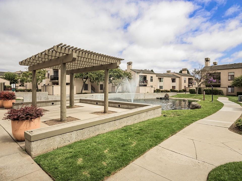 This home is move in ready and located on the ground floor in the front of the complex. It has a large fenced backyard, indoor laundry room, large walk in closet, new paint, and updated bathroom. The family friendly gated community has 2 pools, large common grounds, a couple of fountains with a river throughout the complex. HOA covers the pools, security guards, landscaping, and more. Extra storage above the assigned carport. Easy access to the highway, close to schools, and shopping centers.