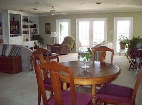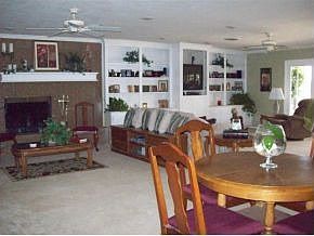 Huge open floor plan. Family room has a built in entertainment wall, carpet, recessed lighting, ceiling fans, a fireplace, crown molding, lots of windows & french doors leading to the covered patio. Kitchen has tile flooring, tile counters & backsplash, built in appliances. 2" blinds through out. Huge laundry room with cabinets. Carpet replaced 2 yrs ago. Ceiling fans. Replacement windows. Re-textured ceilings. Lots of interior paint. Backyard has a wood fence, covered patio & a dog run.