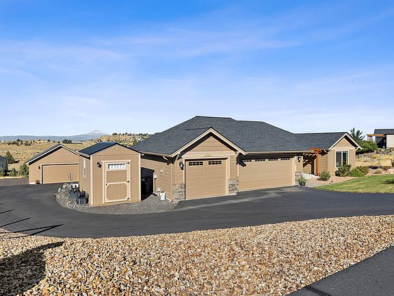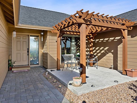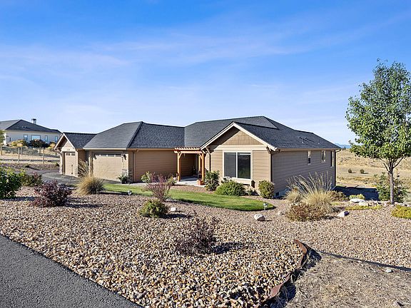 Custom Ranch Style Home on two acres with breathtaking mountain views. Built in 2020 this quality home has been upgraded and well cared for inside and out. Upgrades include insulated interior plumbing walls, ceiling fans, upgraded insulation in attic, glass doors in showers and upgraded lighting outside. Large Primary Bedroom has deck access. Tile upgrades in all bathrooms, jetted tub in Master Bath. Use the third bedroom\den as a bedroom, an office or both as it has a custom built Murphy Bed. Beautiful pergola adorns the front yard for your enjoyment. Shop is 26'x26' heated\cooled, professionally coated floor, gutters and a 30amp circuit. Surprise, under the house has over 700 square foot of storage area with a concrete floor. Outside landscaping recently completed with drip system, sprinkler system, asphalt and large accent rocks. RV Parking. Schedule your showing to see all that this home has to offer.
