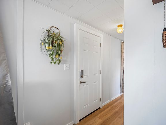 Welcome to this clean 2-bedroom, 1-bath mobile home located in the sought-after Oakdale Mobile Home Park. As you step inside, you'll find a bright and spacious living area. The kitchen has been recently updated with modern appliances and plenty of storage space, while new vinyl flooring flows throughout most of the home. At the back, two comfortable bedrooms await, along with a bathroom featuring an accessible shower. Recent upgrades include new laundry facilities installed in 2023, including professional venting, electrical updates in 2019, including a new thermostat, and two new exterior doors added in 2024. Outside, enjoy a covered porch and a generous carport that fits two vehicles, plus extra storage in the shed. This smoke-free, pet-free home has been well-maintained, including regularly servicing the heating and cooling system. Pad rent includes water and sewer. Pets are allowed with restrictions.