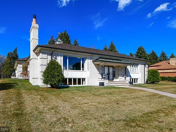 Breathtaking Mid-Century Home with premium location and expansive views of golf course & lake! Admired for its classic white all brick exterior and stately presence in Roseville. Iconic one of a kind Husby build. An architectural beauty w/elegant details, quality construction & finishes. Extremely spacious living & entertaining spaces, welcoming grand foyer, gourmet kitchen, 2 brand new baths, main flr laundry & office - WOW! All living facilities on one level. Addtl bdrms could be added in LL.
