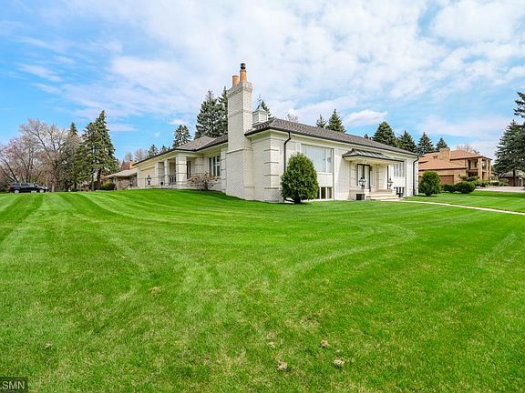 Breathtaking Mid-Century Home with premium location and expansive views of golf course & lake! Admired for its classic white all brick exterior and stately presence in Roseville. Iconic one of a kind Husby build. An architectural beauty w/elegant details, quality construction & finishes. Extremely spacious living & entertaining spaces, welcoming grand foyer, gourmet kitchen, 2 brand new baths, main flr laundry & office - WOW! All living facilities on one level. Addtl bdrms could be added in LL.