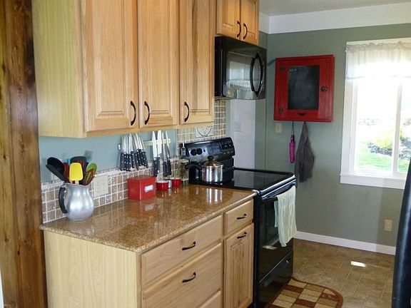 Charming home in Peaceful location!2 bedroom home has original wood flrs throughout the living area & bedrooms.Large living rm has good natural light, crown molding, a fireplace w/a pellet insert & wood mantle plus windows to enjoy the views.Totally upgraded kitchen has hickory cabinets & slab granite counters. Laundry rm has extra cabinet space too. The patio is a great place to enjoy the summer evenings. 30X40 foot shop w/concrete floors has 2 oversized doors & ample storage or workshop area.