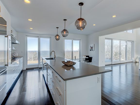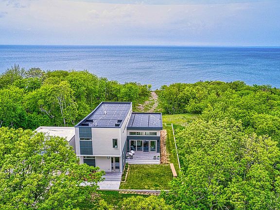 Enjoy beautiful North Fork sunsets from this, exquisitely built modern, light-filled waterfront home in Mattituck with 200 feet of sandy beach frontage. This Rarely found 5.3 acre waterfront estate is truly stunning. The home is beautifully positioned providing spectacular water views and surrounded by gardens, mature specimen trees and lots of room left for a tennis court, pool house, studio and many other possibilities including subdividing it for a second residence. On the first floor, entire walls of glass open to reveal expansive waterside mahogany decks spanning the entire width of the house; perfect for dining and entertaining overlooking all of the natural elements of the stunning property and waterfront. The light filled open floor plan including 3,000 sq.ft. of living space and dark hardwood floors connect the open chef's kitchen and large island to the dining area and living room with fireplace. The homes high ceilings and walls of glass facing the water overlooking the 180 degree water views and park like setting add to the atmosphere. This is a perfect Waterside weekend retreat to enjoy the relaxed lifestyle of the North Fork. Close to farm stands, vineyards, renowned restaurants, great shopping and farm stands. This home is not to be missed.