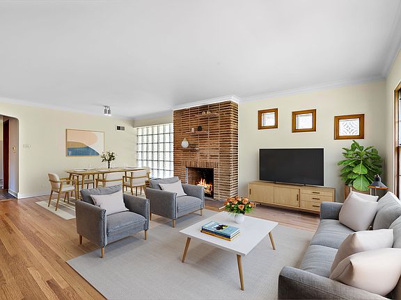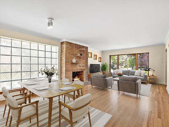 Located on a quiet residential street on a wide corner lot in beautiful North Riverside and in the highly-rated Riverside-Brookfield high school district, this attractive and well-kept 3-bed 2-bath brick ranch offers over 2,000 square feet of total interior space, including the full, finished basement. Highlights include a large and bright front room that accommodates the foyer with a convenient mail slot, an entryway coat closet, and the living and dining room combo boasting a beautiful brick fireplace and gorgeous hardwood floors. The updated eat-in kitchen features new flooring, new countertops, a cedar pantry closet, and a new sink and faucet. Other great features include three good-sized bedrooms, and in the basement, an overhead sewer system, a large and comfortable family room, laundry room, and a bonus room that can function as an office, exercise, or storage room. The attic is easily accessible and provides a lot of additional storage space! Outside enjoy a fenced backyard, a concrete patio, and a 2-car garage. House is recently painted throughout! Enjoy close proximity to major highways, Chicago's Midway and O'Hare airports, the world-famous Brookfield Zoo, forest preserves, and other great surrounding communities. Schedule your showing today! Sold as is.
