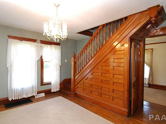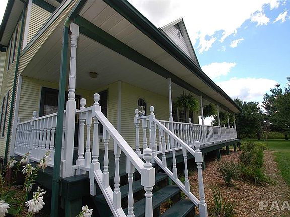 Stunning on the outside and inside! Beautiful natural woodwork & many built in's and closets! Gorgeous staircase at the front of the house & a maids staircase at the back. Master bedroom suite with private bath and den/dressing area, full hall bath & 2 bedrooms upstairs. 1 bedroom on the main floor. Main floor laundry. All windows have been replaced. Outbuilding has a heated shop area. Newer exterior wood furnace heats house and shop. High efficiency furnace & c/a. Garage parking in the outbuilding. Well landscaped yard with beautiful country views from both front & back porches.