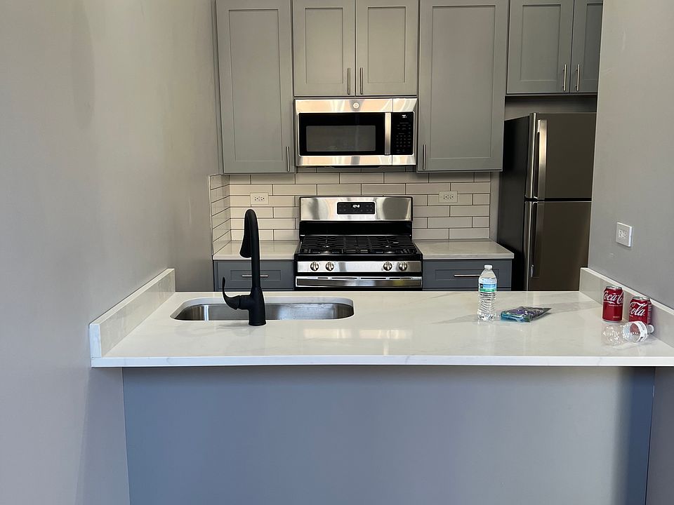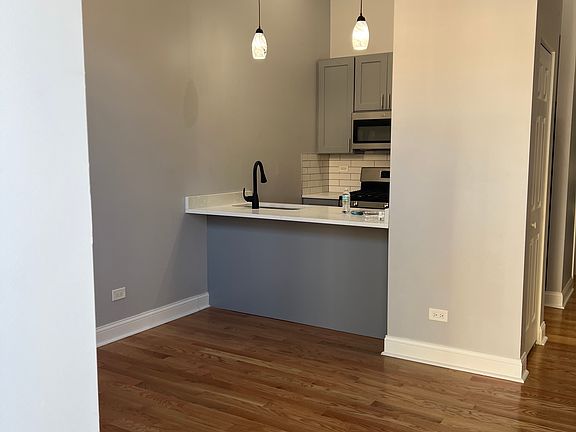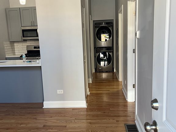 Cozy 2 bedroom, 1 bathroom first floor apartment available immediately. Apartment has been gut rehabbed with brand new flooring, modern bathroom, kitchen cabinets, and stainless steel kitchen appliances including fridge, stove, dishwasher, and microwave. Bedrooms are 8'9"x11, and each one has a closet. Modern amenities include central heat and air conditioning, and in-unit washer/dryer. Short 10-minute walk from Central Park Pink Line stop. Smoke-free apartment in a smoke-free building. Available immediately and can accommodate move-ins through April 1. 12 or 18-month lease. One month's rent and non-refundable move-in fee of $400 due upon lease signing. Tenant pays light and gas. Application with credit and background check required for each adult through this listing website. Requirements include: gross (before taxes) income of 3 times the monthly rent, no previous evictions, and no collections on credit report.