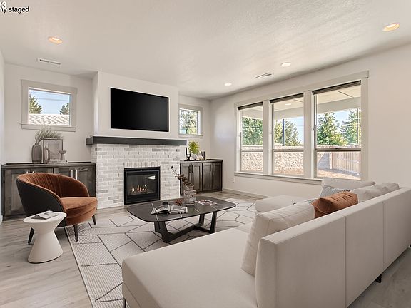 Situated in the trendy Eagle Ridge Estates, this chic home is where modern design meets ample space. Covering 2,930 sqft, 5 bedrooms and 3 baths, tailored for those with an appreciation for a contemporary flair and clean aesthetic. The space masterfully blends the living, dining, and kitchen areas, serving a "social hub" vibe for all your epic gatherings. Huge windows flood it with sunlight, and there?s a sleek fireplace for those PNW winter nights. The kitchen is equipped with the latest gadgets, tons of prep space, and minimalist cabinetry. Adjacent lies the dining nook, sun-kissed and perfect for post-meal chats. The Primary Suite is drenched in natural light, with cushy carpeting and an attached luxe bathroom. Complete with a lavish tub, a separate rain shower, dual sinks, and fittings that shine. The other four bedrooms are spacious and waiting for your unique stamp, and the additional bathrooms are all about style and efficiency. Outdoors, the backyard is your canvas. Manicured and versatile, it?s set for BBQ weekends, sunbathing sessions, or just vibing under the sky. A convenient, raised TuffShed in the backyard is perfect for additional storage and yard equipment.