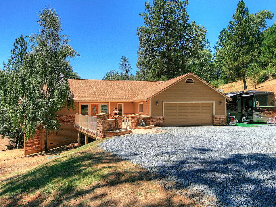 Lake Combie Access with Boat Launch & End of Road Privacy! Home is very well maintained and well cared for! Deck & covered patio off living room & master bedroom perfect spot for your morning coffee. Home features 3 bedrooms, 2 baths, laundry room, kitchen with stainless steel appliances & more! Garage has A/C & a TV making it the perfect spot for a workshop for him! Ample parking, plus RV parking w/ water & 30 Amp Hookup. Approx 1,000 sqft of storage space or convert to living space below home?