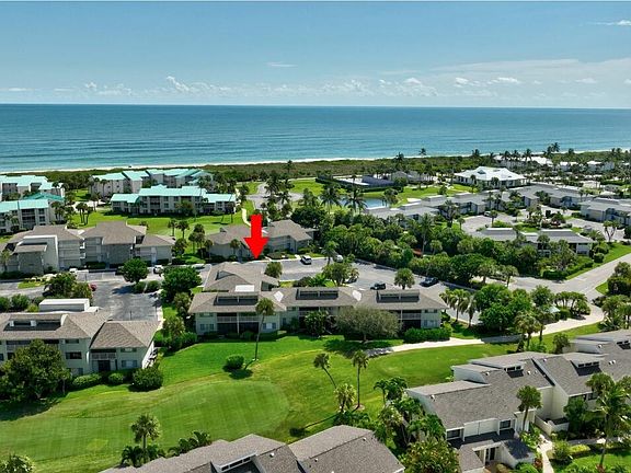 NEAR THE OCEAN! Adorable 1 bedroom 1 bath fully furnished ''Golf Villas'' condo at Ocean Village! Light & bright unit with vaulted ceiling, french doors to the bedroom, tile flooring, large screened balcony with great view of the golf course. Near the ocean & all Ocean Village amenities. Would be great rental unit if owner so desires. This condo can be rented by the week! Enjoy the best of Florida living at this beautiful oceanfront community offering 24 hr gated entry, 9 hole par 3 golf course, tennis, bocce ball, pickelball courts, 4 pools, new clubhouse & fitness center, oceanfront restaturant & tiki bar & 3500 feet of oceanfront. Located on Hutchinson Island with 21 miles of uncrowded & unspoiled beaches. Measurements approximate.
