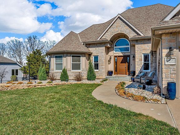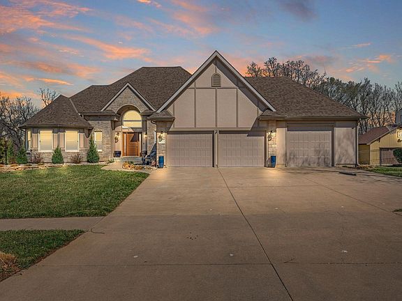Stunning 1.5 story home on a beautiful 2/3 acre lot nearby Lake Shawnee. As you walk through the front door, you are greeted by soaring ceilings and one of the most beautiful stone fireplaces you will ever see. Large picture windows allow in an abundance of natural light, enhancing the main floor. The well designed kitchen features quartz countertops and a layout you'll enjoy cooking in. Nice eat in kitchen area with great view of the back yard, while also having a formal dining room that leads out to a patio area and fire-pit. Large main floor bedroom with en suite and walk in closet. Two big bedrooms upstairs with a jack and jill bathroom. The basement features two more large bedrooms, a family room, wet bar, and plenty of storage. Daylight windows in the basement give it a comfortable feel. You will appreciate the low maintenance exterior with a timeless and elegant design. The exterior features low maintenance landscaping, a manicured lawn, mature trees and wet weather stream, large storage shed, multiple sitting/entertaining areas, basketball goal, and more. In addition, we can't forget about the 3 car garage! Homes with this amount of character, features, and quality on this type of lot do not come around often.