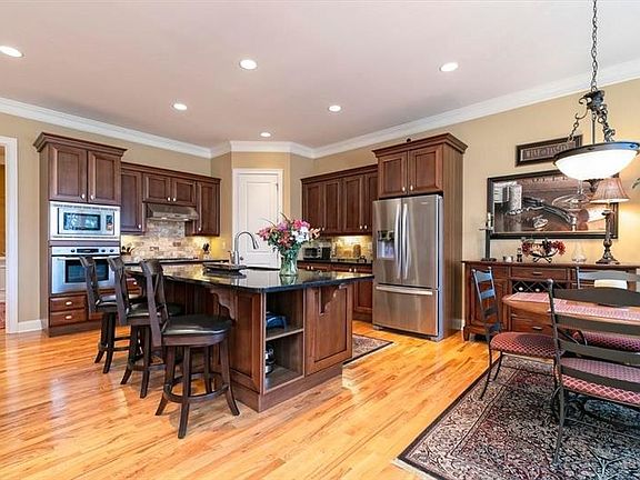 - Kitchen Features: Breakfast Bar, Cabinets Stain, Eat-in Kitchen, View to Family Room, Stone Counters, Kitchen Island, Pantry Walk-In