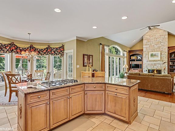 CUSTOM BUILT ON A DOUBLE LOT IN LONG BEACH COVE! Take full advantage of the incredible long views down scenic Lake Claire. Cook's kitchen with Thermador cooktop and double convection ovens. Newer Bosch whisper quiet dishwasher, Samsung refrigerator and Panasonic microwave. Granite countertops, custom hardwood cabinets with beautiful tile floor. Hardwood in entry, dining room and family room. Family room w/ cathedral ceiling with natural gas fireplace and custom built-in cabinets. Plush carpeting in living room, master bedroom and guest bedrooms. Tray ceilings in dining room and master bedroom. Pella windows throughout. First floor laundry room with newer LG washer and dryer. Whole House Sound System. Full finished basement includes carpeting, wet bar with refrigerator, dishwasher and microwave. 80'' projection TV, pool table, wine cellar and workout room. Beautiful full bath, tons of storage. ADT Security System. Hydrawise irrigation system. Private, quiet and tranquil!