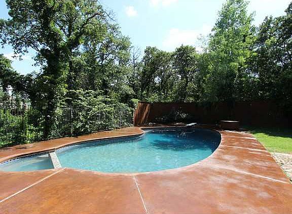 UNIQUE HOME ON GORGEOUS 2-ACRE WOODED LOT IN EDMOND. Feel like you're on vacation in your own home. Relax in privacy by the pool, entertain guests, or just enjoy picturesque views of mature trees. Club-kitchen w/custom cabinetry, granite counters, stainless appliances breakfast bar island & fireplace. Large living w/vaulted ceiling & fireplace. The master retreat is huge w/ fireplace, wood plank vaulted ceiling & access to spacious covered patio.