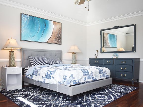 Step into our open-concept living area, where beach vibes meet modern comfort. Whether you're cozying up by the fireplace or binge-watching your favorite shows on the massive 57" flat screen TV, you'll feel right at home. Our dining area seats eight, perfect for family feasts or game night showdowns. And for those who prefer a more casual vibe, the breakfast bar is calling your name!